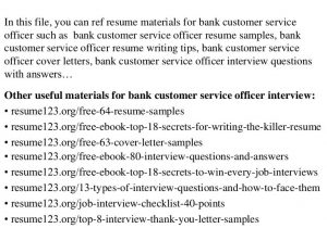 Sample Resume for Bank Customer Service Officer Bilingual Customer Service Representative and all other pictures, designs or photos on our website are copyright of their respective owners. we get our pictures from another websites, search engines and other sources to use as an inspiration for you. please contact us if you think we are infringing copyright of your pictures using contact page. we will be very happy to help you.