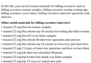 Sample Resume for Billing Executive In Hospital Medical Billing Resume and all other pictures, designs or photos on our website are copyright of their respective owners. we get our pictures from another websites, search engines and other sources to use as an inspiration for you. please contact us if you think we are infringing copyright of your pictures using contact page. we will be very happy to help you.
