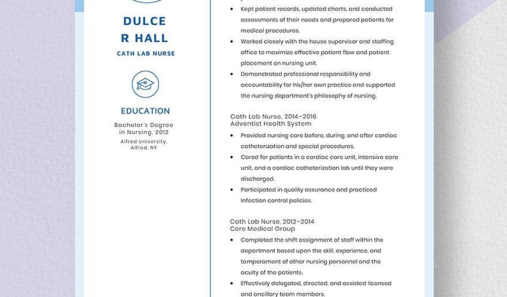 Sample Resume for Cardiac Cath Lab Nurse Cath Lab Nurse Resume Template – Word, Apple Pages Template.net and all other pictures, designs or photos on our website are copyright of their respective owners. we get our pictures from another websites, search engines and other sources to use as an inspiration for you. please contact us if you think we are infringing copyright of your pictures using contact page. we will be very happy to help you.