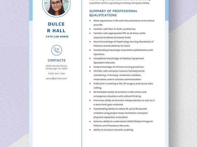 have new images for Sample Resume for Cardiac Cath Lab Nurse Cath Lab Nurse Resume Template – Word, Apple Pages Template.net? please contact us immediately.