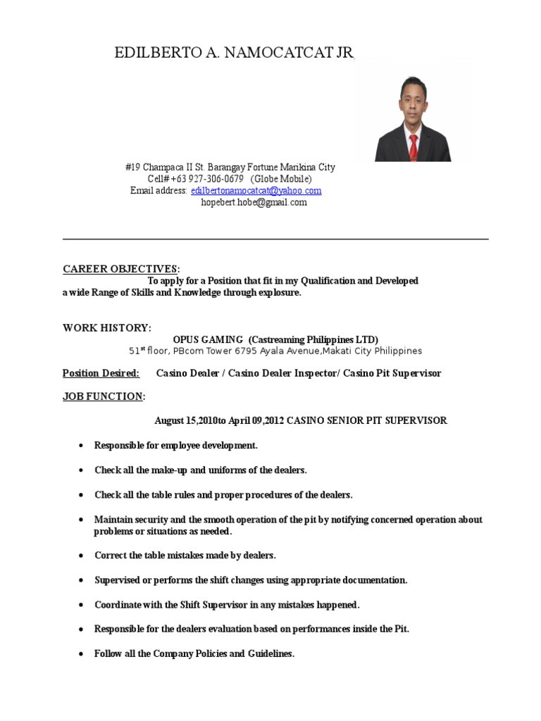 Sample Resume for Casino Pit Supervisor Casino Resume Pdf Supervisor Gambling is related to Resume Samples. if you looking for Sample Resume for Casino Pit Supervisor Casino Resume Pdf Supervisor Gambling and you feel this is useful, you must share this image to your friends. we also hope this image of Sample Resume for Casino Pit Supervisor Casino Resume Pdf Supervisor Gambling can be useful for you. we will always give new source of image for you