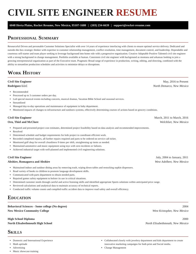 Sample Resume for Civil Site Engineer Civil Site Engineer Resumes and all other pictures, designs or photos on our website are copyright of their respective owners. we get our pictures from another websites, search engines and other sources to use as an inspiration for you. please contact us if you think we are infringing copyright of your pictures using contact page. we will be very happy to help you.