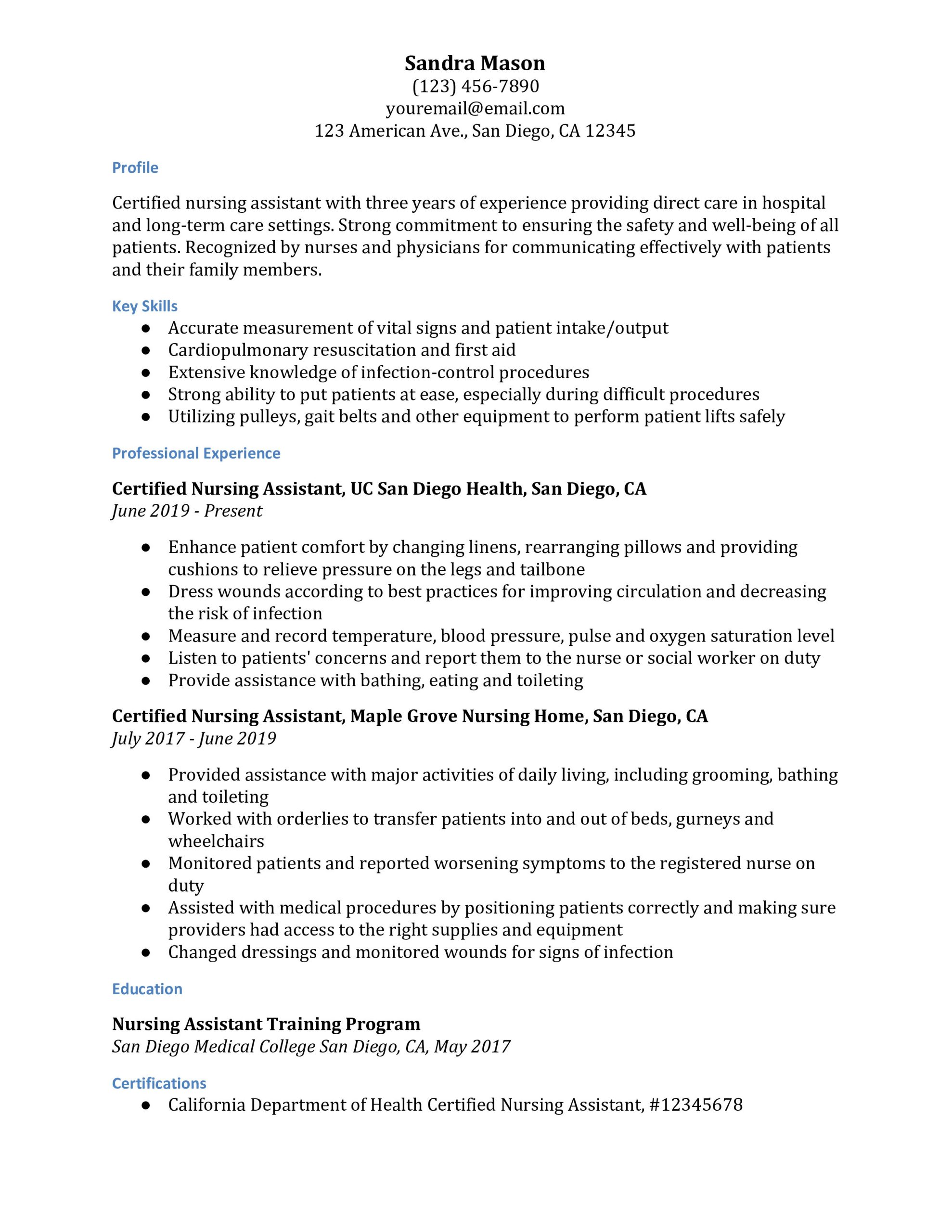 Sample Resume for Cna with No Previous Experience Certified Nursing assistant Resume Examples – Resumebuilder.com and all other pictures, designs or photos on our website are copyright of their respective owners. we get our pictures from another websites, search engines and other sources to use as an inspiration for you. please contact us if you think we are infringing copyright of your pictures using contact page. we will be very happy to help you.