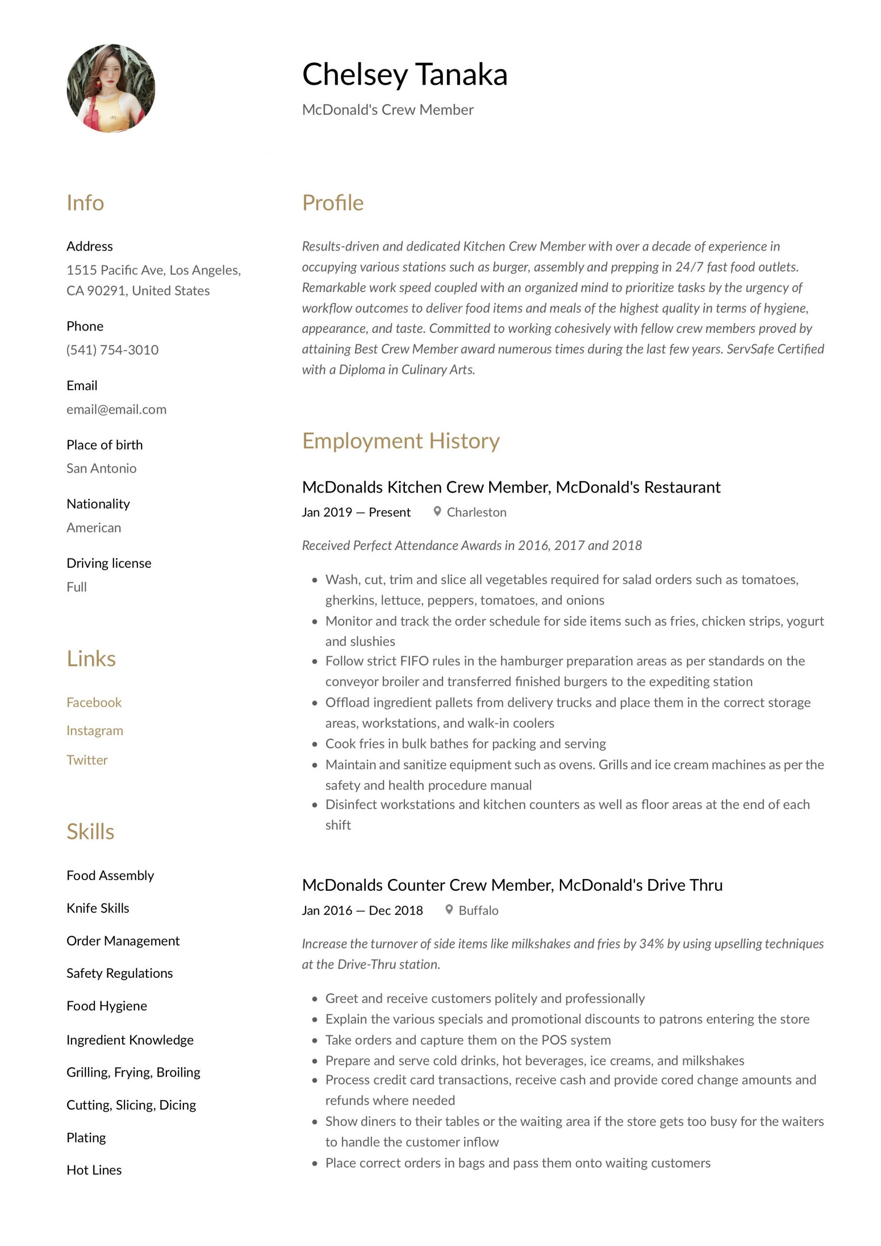 Sample Resume for Crew Member at Mcdonalds Mcdonalds Crew Member Resume & Writing Guide and all other pictures, designs or photos on our website are copyright of their respective owners. we get our pictures from another websites, search engines and other sources to use as an inspiration for you. please contact us if you think we are infringing copyright of your pictures using contact page. we will be very happy to help you.