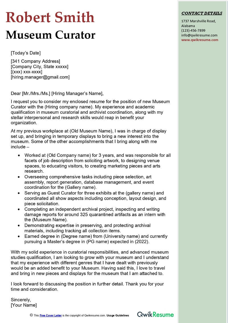 Sample Resume for Curatorial Design Museum Museum Curator Cover Letter Examples – Qwikresume and all other pictures, designs or photos on our website are copyright of their respective owners. we get our pictures from another websites, search engines and other sources to use as an inspiration for you. please contact us if you think we are infringing copyright of your pictures using contact page. we will be very happy to help you.