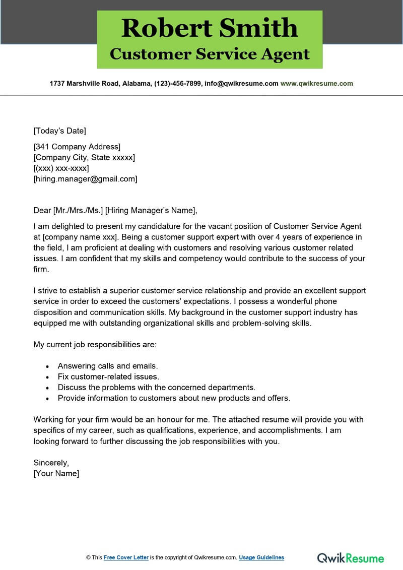 Sample Resume for Customer Servce Jobs with Cover Letter Customer Service Agent Cover Letter Examples – Qwikresume and all other pictures, designs or photos on our website are copyright of their respective owners. we get our pictures from another websites, search engines and other sources to use as an inspiration for you. please contact us if you think we are infringing copyright of your pictures using contact page. we will be very happy to help you.