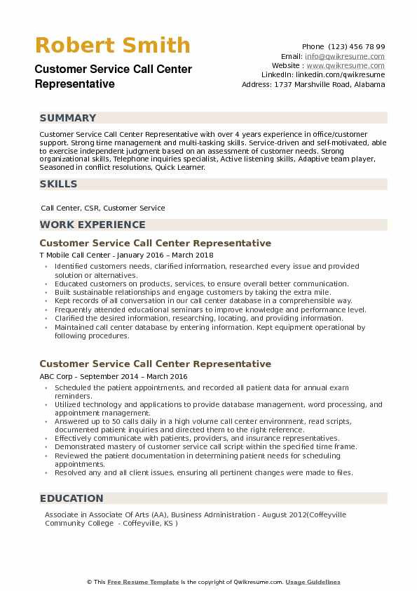 Sample Resume for Customer Service Representative Call Center Customer Service Call Center Representative Resume Samples and all other pictures, designs or photos on our website are copyright of their respective owners. we get our pictures from another websites, search engines and other sources to use as an inspiration for you. please contact us if you think we are infringing copyright of your pictures using contact page. we will be very happy to help you.