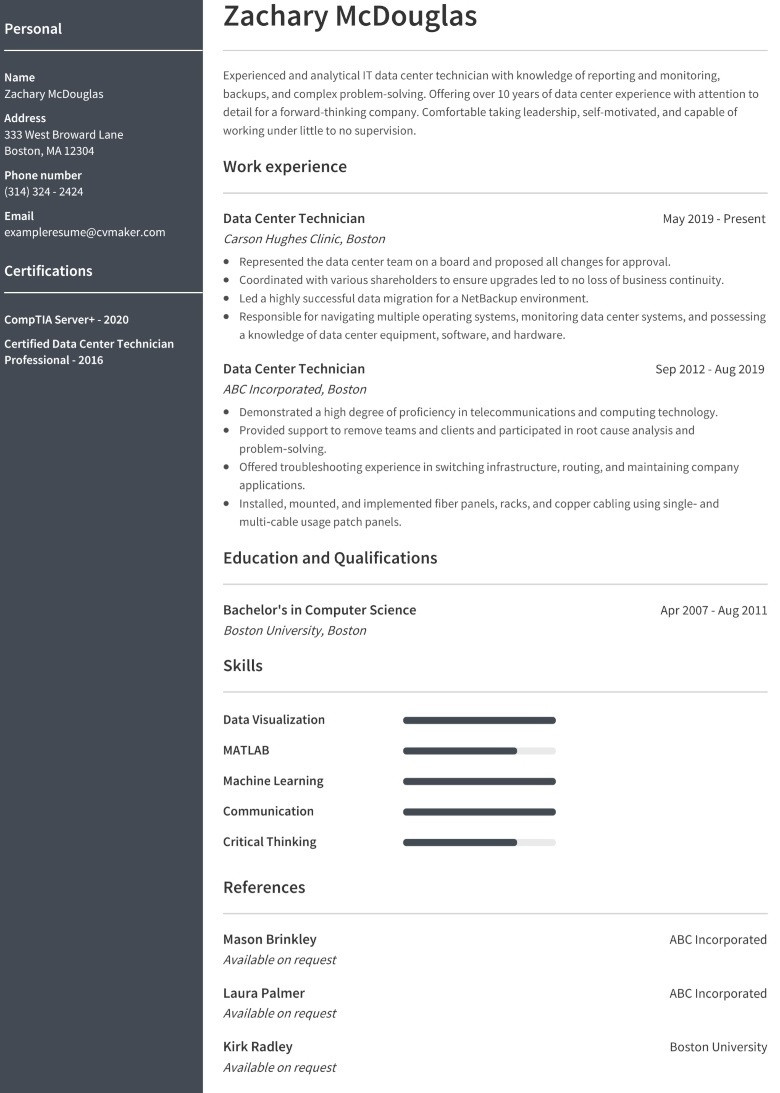 6 photos of the Sample Resume for Data Center Technician