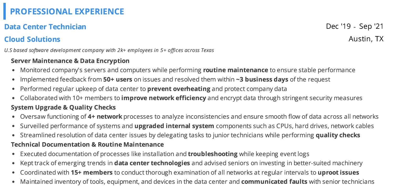 Sample Resume for Data Center Technician Data Center Technician Resume: 2022 Guide with Samples and Examples is related to Resume Samples. if you looking for Sample Resume for Data Center Technician Data Center Technician Resume: 2022 Guide with Samples and Examples and you feel this is useful, you must share this image to your friends. we also hope this image of Sample Resume for Data Center Technician Data Center Technician Resume: 2022 Guide with Samples and Examples can be useful for you. we will always give new source of image for you