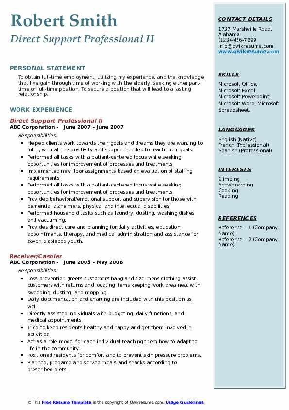 Sample Resume for Direct Support Professional Direct Support Professional Resume Samples and all other pictures, designs or photos on our website are copyright of their respective owners. we get our pictures from another websites, search engines and other sources to use as an inspiration for you. please contact us if you think we are infringing copyright of your pictures using contact page. we will be very happy to help you.