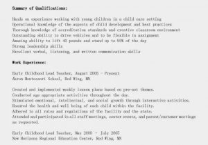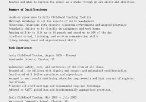 Back To Sample Resume for Early Childhood Educator Job