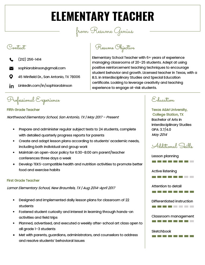 Sample Resume for Elementary Education Teacher Elementary Teacher Resume Samples & Writing Guide