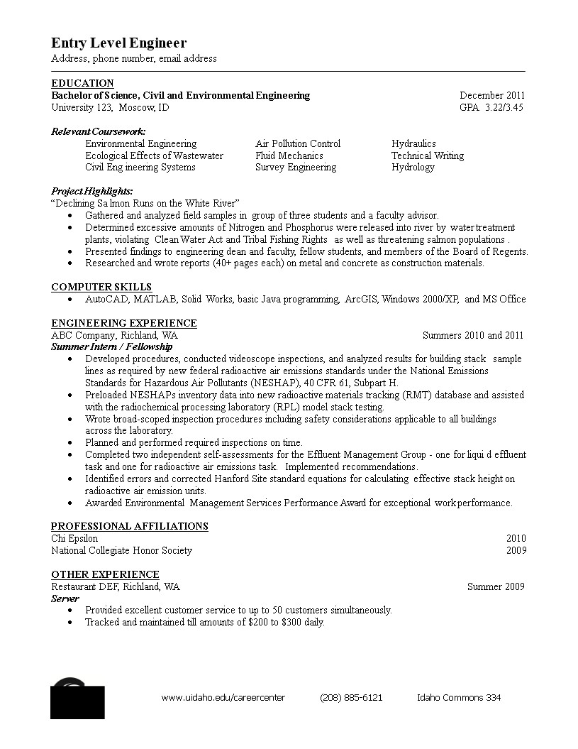 Sample Resume for Entry Level Civil Engineer 免费 Resume for Entry Level Civil Engineering and all other pictures, designs or photos on our website are copyright of their respective owners. we get our pictures from another websites, search engines and other sources to use as an inspiration for you. please contact us if you think we are infringing copyright of your pictures using contact page. we will be very happy to help you.