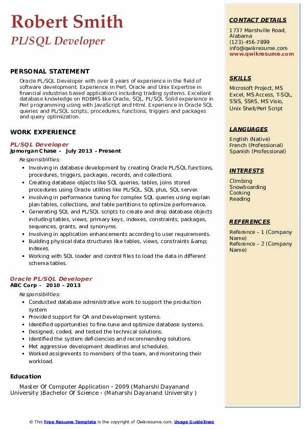 Sample Resume for Experienced Pl Sql Developer Pl Sql Developer Resume Samples and all other pictures, designs or photos on our website are copyright of their respective owners. we get our pictures from another websites, search engines and other sources to use as an inspiration for you. please contact us if you think we are infringing copyright of your pictures using contact page. we will be very happy to help you.