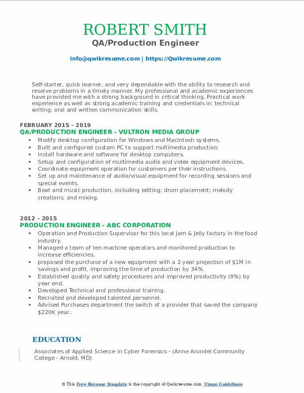 Back To Sample Resume for Experienced Production Engineer Pdf
