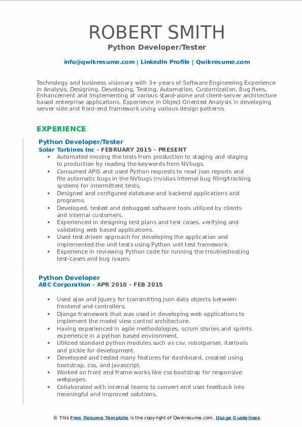 Sample Resume for Experienced Python Developer Python Developer Resume Samples and all other pictures, designs or photos on our website are copyright of their respective owners. we get our pictures from another websites, search engines and other sources to use as an inspiration for you. please contact us if you think we are infringing copyright of your pictures using contact page. we will be very happy to help you.