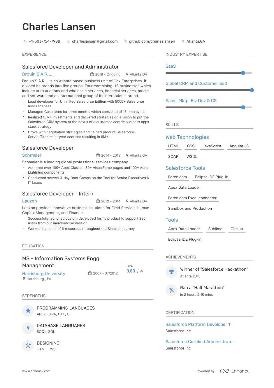 Sample Resume for Experienced Salesforce Developer Salesforce Developer Resume Samples and Writing Guide for and all other pictures, designs or photos on our website are copyright of their respective owners. we get our pictures from another websites, search engines and other sources to use as an inspiration for you. please contact us if you think we are infringing copyright of your pictures using contact page. we will be very happy to help you.