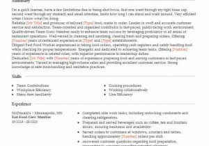 Back To Sample Resume for Fast Food Crew without Experience