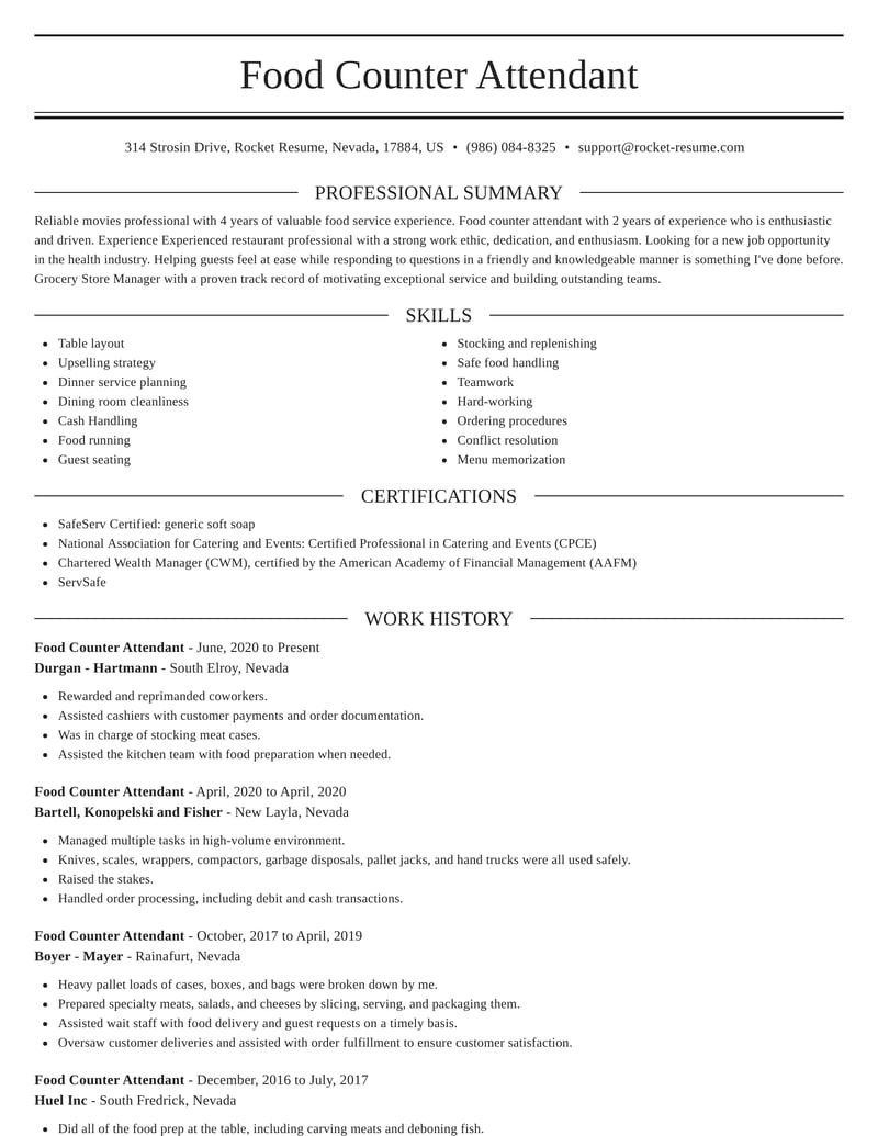Sample Resume for Food Counter attendant Food Counter attendant Resumes and all other pictures, designs or photos on our website are copyright of their respective owners. we get our pictures from another websites, search engines and other sources to use as an inspiration for you. please contact us if you think we are infringing copyright of your pictures using contact page. we will be very happy to help you.