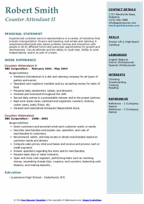 Sample Resume for Food Counter attendant Counter attendant Resume Samples is related to Resume Samples. if you looking for Sample Resume for Food Counter attendant Counter attendant Resume Samples and you feel this is useful, you must share this image to your friends. we also hope this image of Sample Resume for Food Counter attendant Counter attendant Resume Samples can be useful for you. we will always give new source of image for you