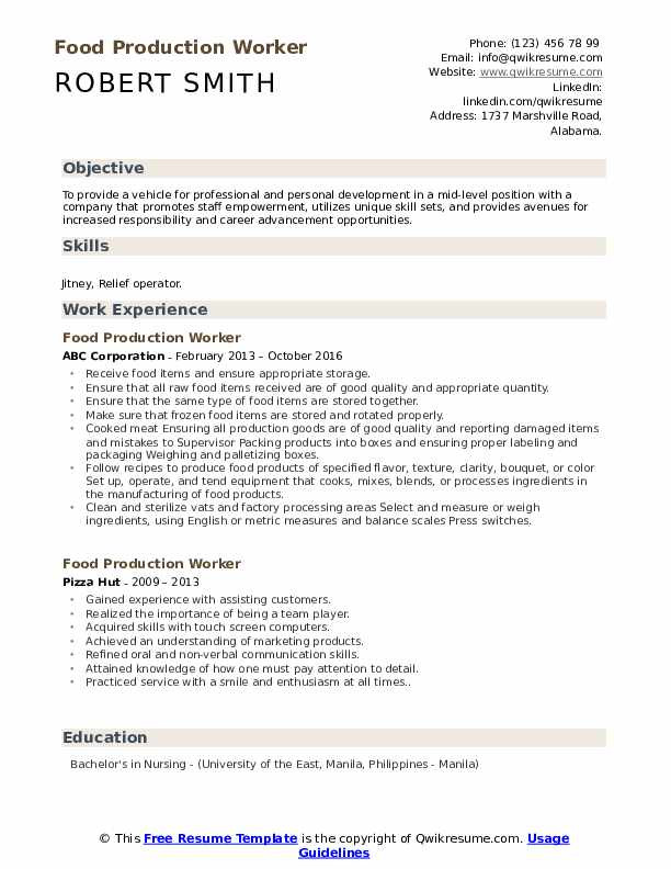 Sample Resume for Food Process Worker Food Production Worker Resume Samples and all other pictures, designs or photos on our website are copyright of their respective owners. we get our pictures from another websites, search engines and other sources to use as an inspiration for you. please contact us if you think we are infringing copyright of your pictures using contact page. we will be very happy to help you.