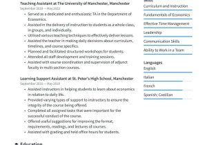 Back To Sample Resume for Graduate Teaching assistant In Graduate School