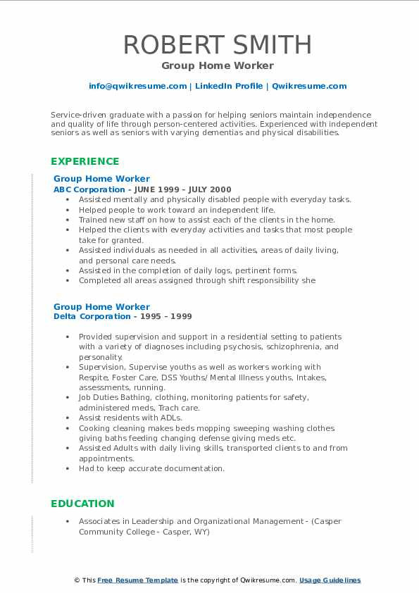 Sample Resume for Group Home Worker Group Home Worker Resume Samples and all other pictures, designs or photos on our website are copyright of their respective owners. we get our pictures from another websites, search engines and other sources to use as an inspiration for you. please contact us if you think we are infringing copyright of your pictures using contact page. we will be very happy to help you.