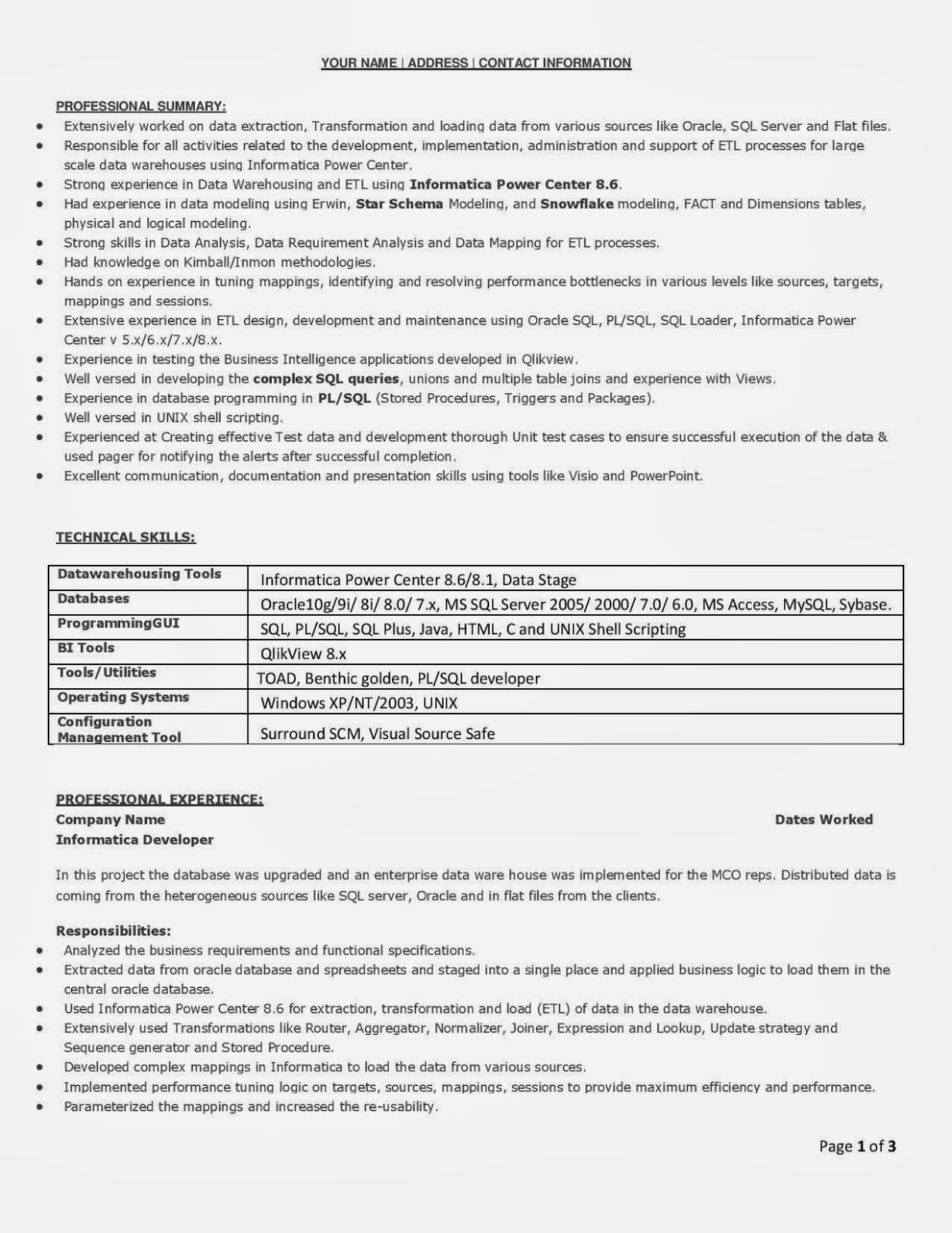 Back To Sample Resume for H1b Visa Application