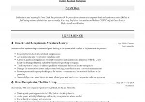 Sample Resume for Hotel Front Desk Receptionist Resume for Receptionist at Hotel and all other pictures, designs or photos on our website are copyright of their respective owners. we get our pictures from another websites, search engines and other sources to use as an inspiration for you. please contact us if you think we are infringing copyright of your pictures using contact page. we will be very happy to help you.
