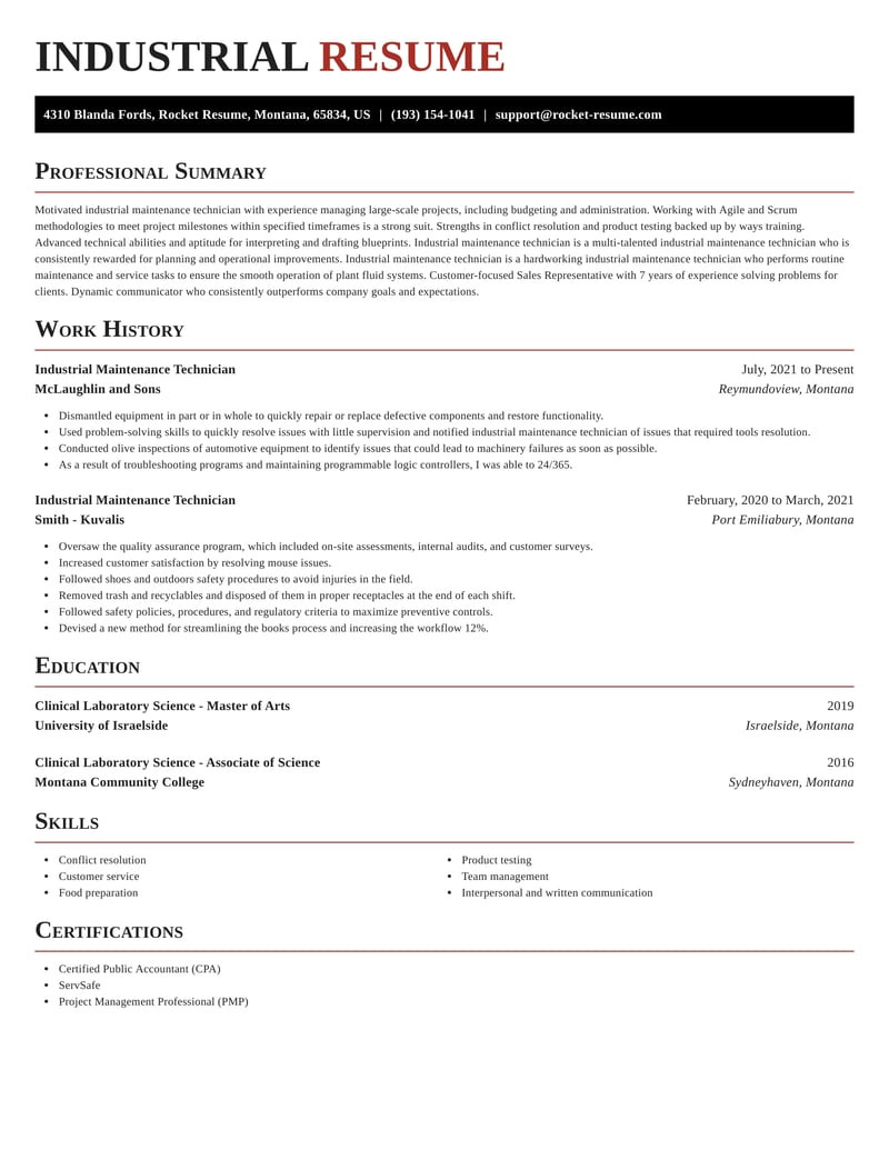 Sample Resume for Industrial Maintenance Technician Industrial Maintenance Technician Resume Help & Samples and all other pictures, designs or photos on our website are copyright of their respective owners. we get our pictures from another websites, search engines and other sources to use as an inspiration for you. please contact us if you think we are infringing copyright of your pictures using contact page. we will be very happy to help you.