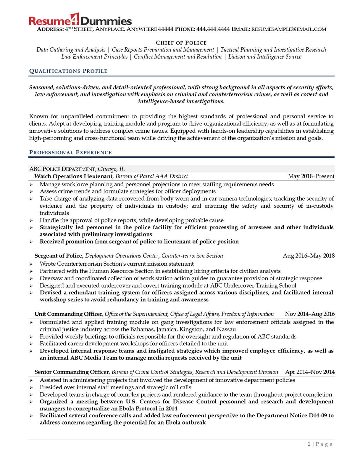 Sample Resume for Land Management Law Enforcement Officer Chief Of Police Resume Example Resume4dummies and all other pictures, designs or photos on our website are copyright of their respective owners. we get our pictures from another websites, search engines and other sources to use as an inspiration for you. please contact us if you think we are infringing copyright of your pictures using contact page. we will be very happy to help you.