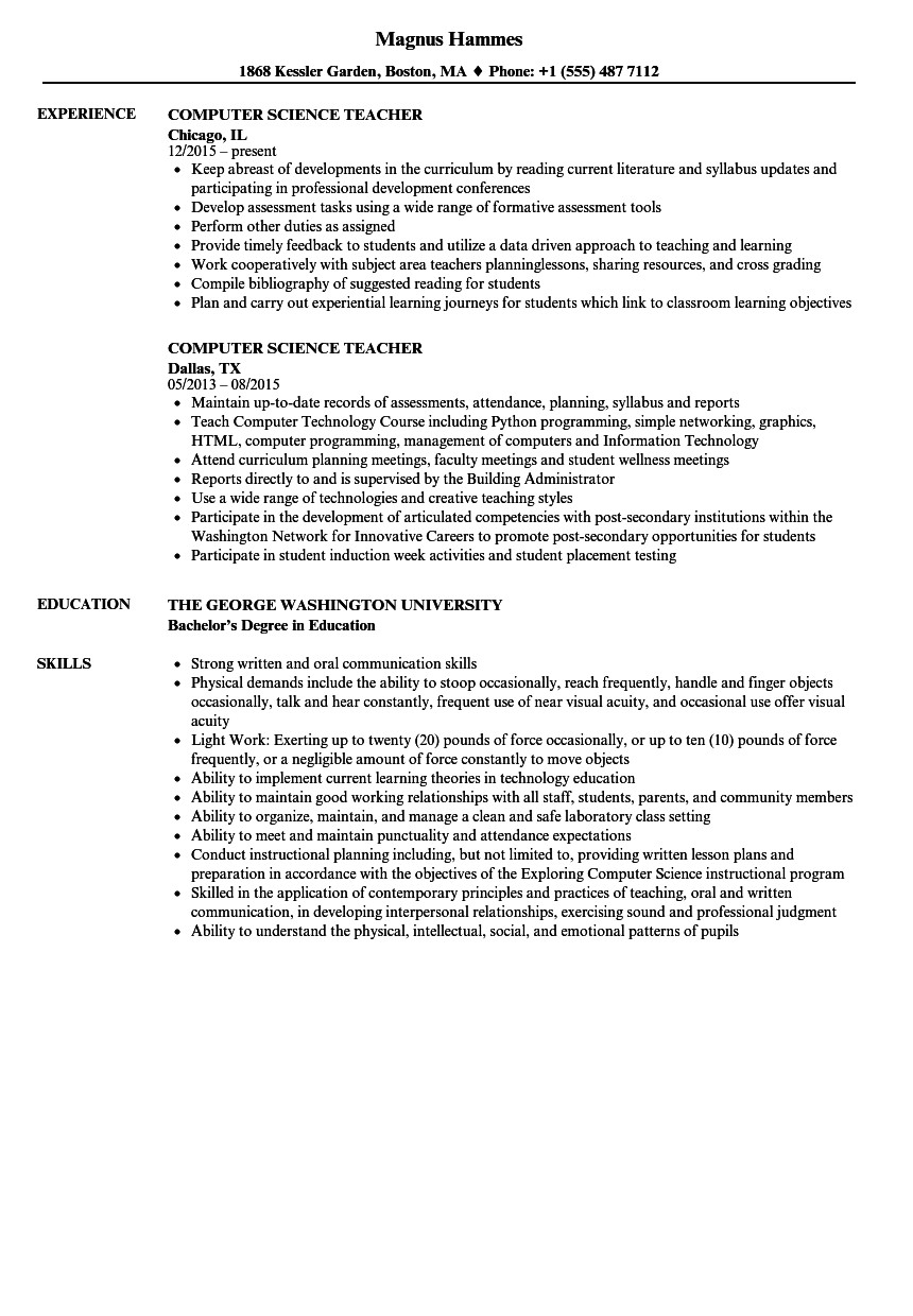 Sample Resume for Lecturer In Computer Science with Experience Puter Science Teacher Resume Samples and all other pictures, designs or photos on our website are copyright of their respective owners. we get our pictures from another websites, search engines and other sources to use as an inspiration for you. please contact us if you think we are infringing copyright of your pictures using contact page. we will be very happy to help you.
