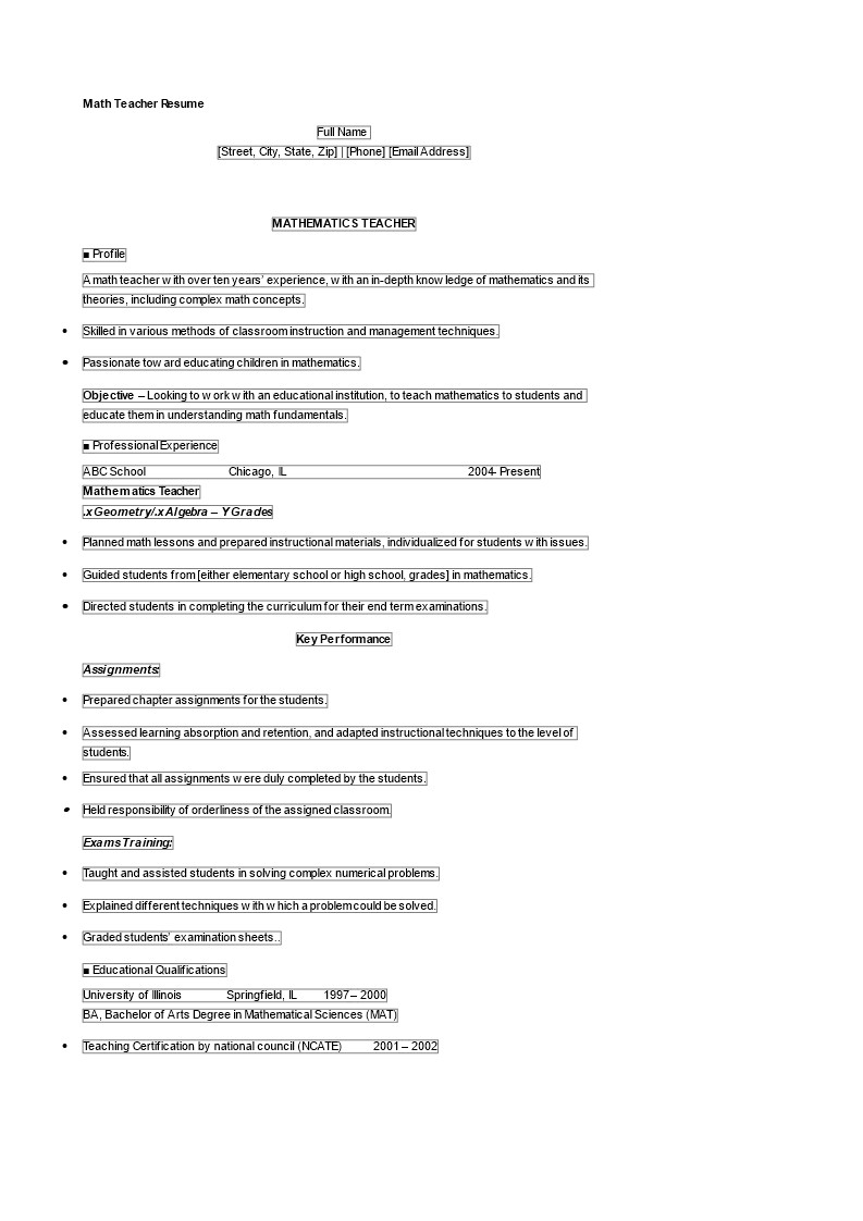 Sample Resume for Math Teaching Position Math Teacher Resume and all other pictures, designs or photos on our website are copyright of their respective owners. we get our pictures from another websites, search engines and other sources to use as an inspiration for you. please contact us if you think we are infringing copyright of your pictures using contact page. we will be very happy to help you.