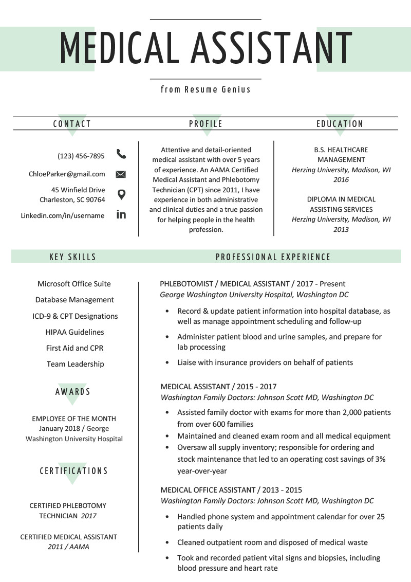Sample Resume for Medical assistant with Experience Medical assistant Resume Sample & Writing Guide and all other pictures, designs or photos on our website are copyright of their respective owners. we get our pictures from another websites, search engines and other sources to use as an inspiration for you. please contact us if you think we are infringing copyright of your pictures using contact page. we will be very happy to help you.