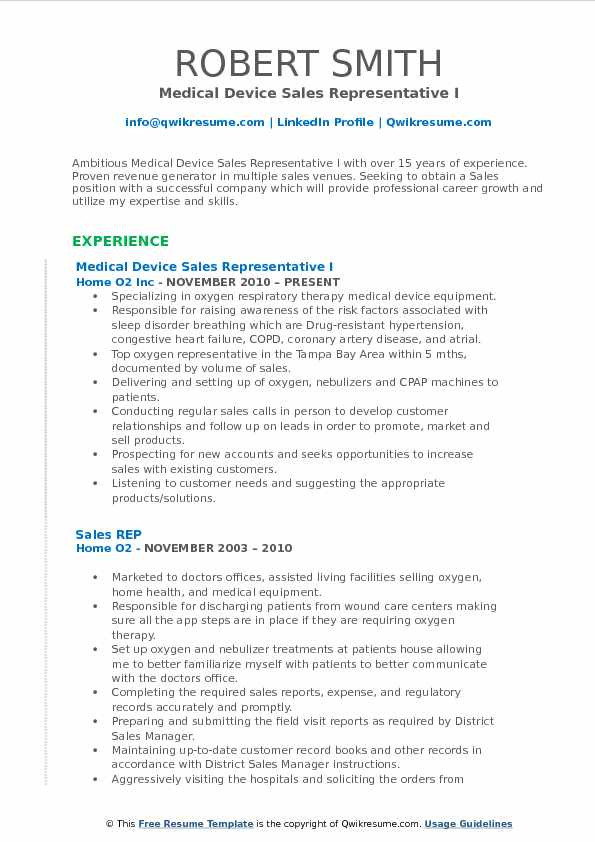 Sample Resume for Medical Device Sales Rep Medical Device Sales Representative Resume Samples and all other pictures, designs or photos on our website are copyright of their respective owners. we get our pictures from another websites, search engines and other sources to use as an inspiration for you. please contact us if you think we are infringing copyright of your pictures using contact page. we will be very happy to help you.