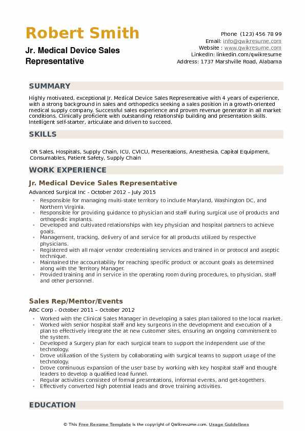 Sample Resume for Medical Device Sales Rep Medical Device Sales Representative Resume Samples and all other pictures, designs or photos on our website are copyright of their respective owners. we get our pictures from another websites, search engines and other sources to use as an inspiration for you. please contact us if you think we are infringing copyright of your pictures using contact page. we will be very happy to help you.