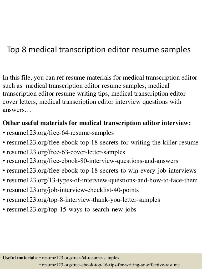 Sample Resume for Medical Transcriptionist with Experience top 8 Medical Transcription Editor Resume Samples and all other pictures, designs or photos on our website are copyright of their respective owners. we get our pictures from another websites, search engines and other sources to use as an inspiration for you. please contact us if you think we are infringing copyright of your pictures using contact page. we will be very happy to help you.