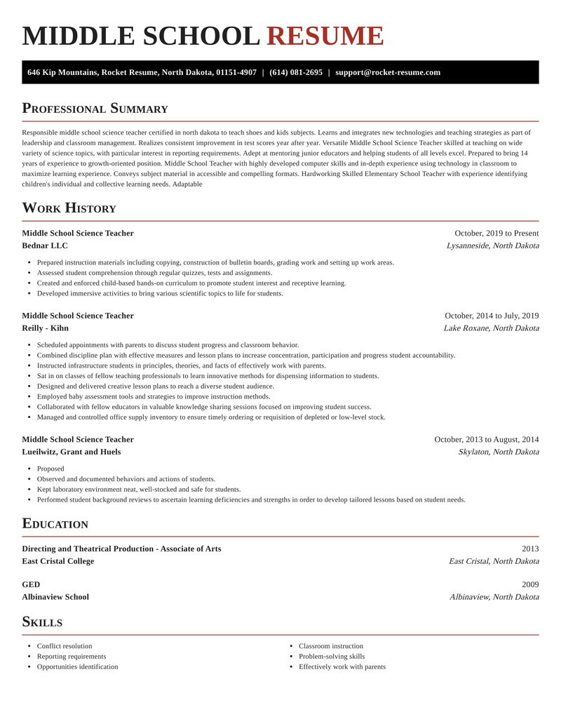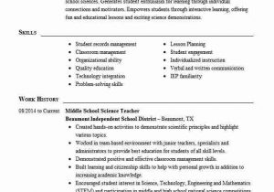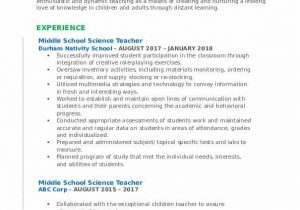 Sample Resume for Middle School Science Teacher Middle School Science Teacher Resumes and all other pictures, designs or photos on our website are copyright of their respective owners. we get our pictures from another websites, search engines and other sources to use as an inspiration for you. please contact us if you think we are infringing copyright of your pictures using contact page. we will be very happy to help you.