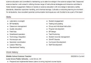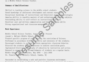 Back To Sample Resume for Middle School Science Teacher