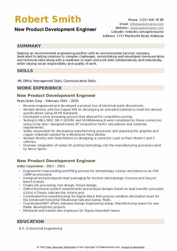 Sample Resume for New Product Development Engineer New Product Development Engineer Resume Samples and all other pictures, designs or photos on our website are copyright of their respective owners. we get our pictures from another websites, search engines and other sources to use as an inspiration for you. please contact us if you think we are infringing copyright of your pictures using contact page. we will be very happy to help you.