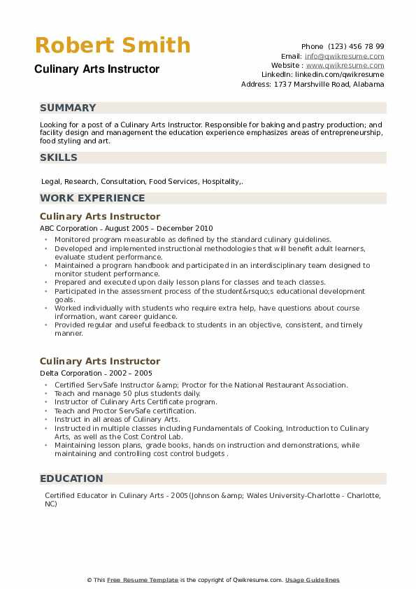 Sample Resume for Ojt Culinary Students Culinary Arts Instructor Resume Samples and all other pictures, designs or photos on our website are copyright of their respective owners. we get our pictures from another websites, search engines and other sources to use as an inspiration for you. please contact us if you think we are infringing copyright of your pictures using contact page. we will be very happy to help you.