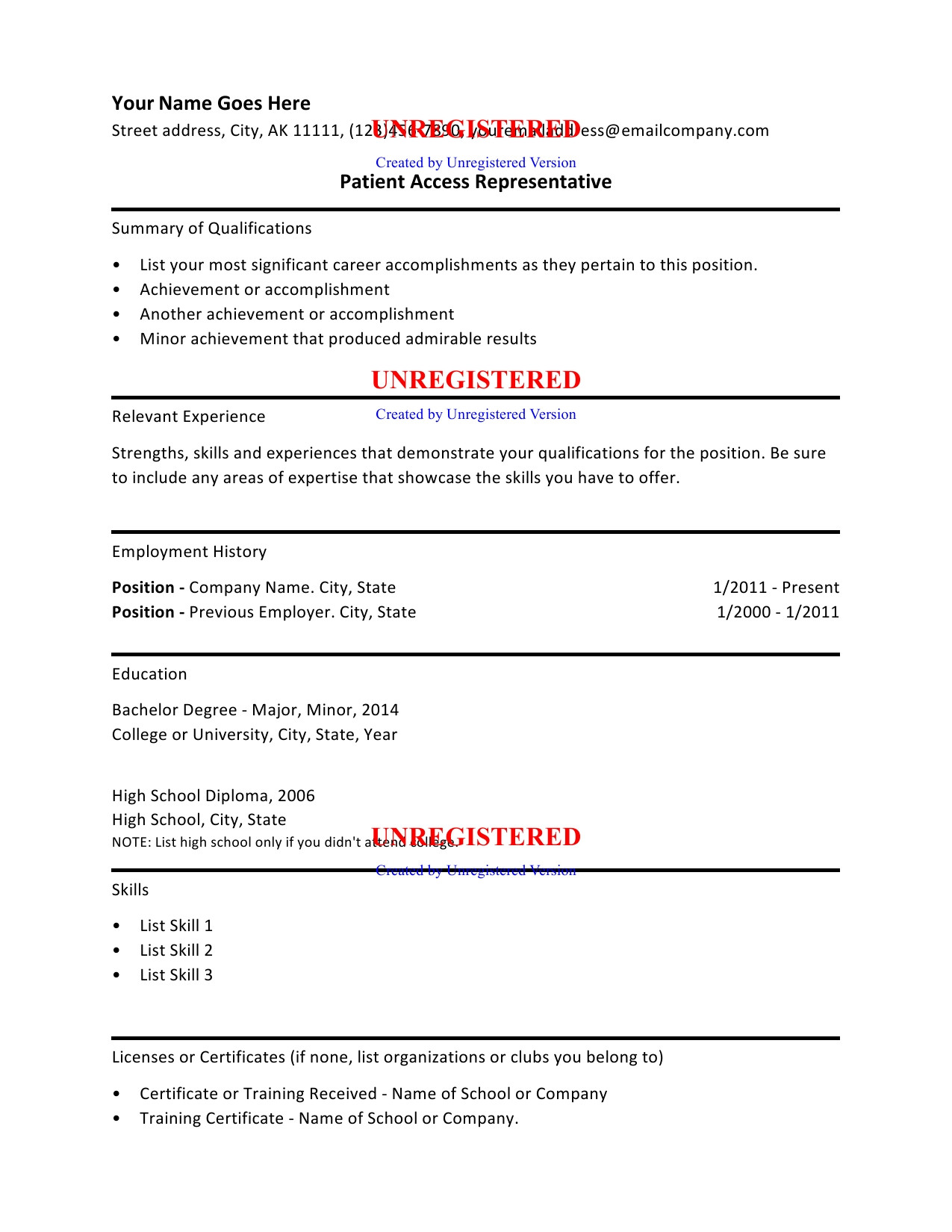 Sample Resume for Patient Access Representative Patient Access Representative Resume Template – Granite State Jobs and all other pictures, designs or photos on our website are copyright of their respective owners. we get our pictures from another websites, search engines and other sources to use as an inspiration for you. please contact us if you think we are infringing copyright of your pictures using contact page. we will be very happy to help you.