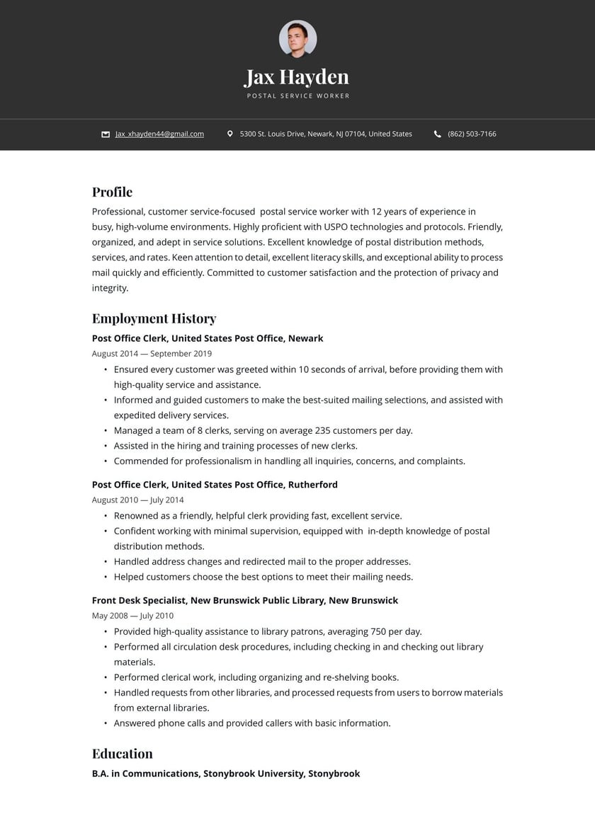 Sample Resume for Post Office Job Postal Service Worker Resume Examples & Writing Tips 2021 (free Guide) and all other pictures, designs or photos on our website are copyright of their respective owners. we get our pictures from another websites, search engines and other sources to use as an inspiration for you. please contact us if you think we are infringing copyright of your pictures using contact page. we will be very happy to help you.