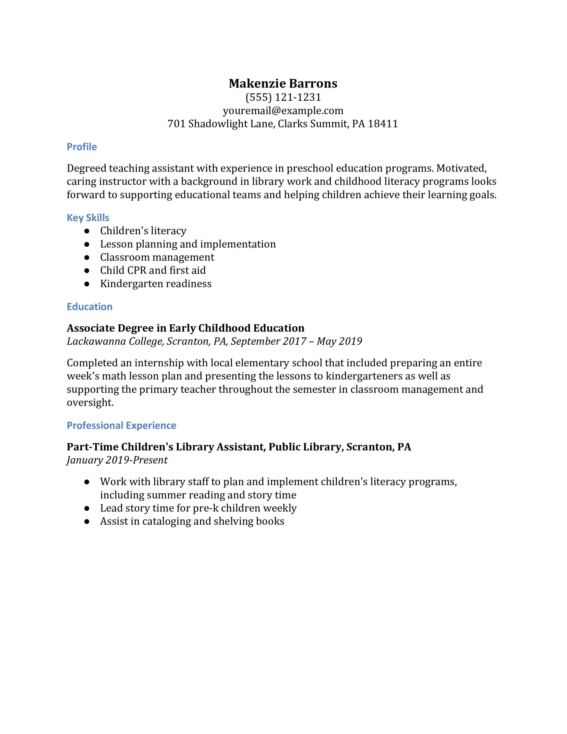 Sample Resume for Preschool Teacher assistant Teacher assistant Resume Examples – Resumebuilder.com is related to Resume Samples. if you looking for Sample Resume for Preschool Teacher assistant Teacher assistant Resume Examples – Resumebuilder.com and you feel this is useful, you must share this image to your friends. we also hope this image of Sample Resume for Preschool Teacher assistant Teacher assistant Resume Examples – Resumebuilder.com can be useful for you. we will always give new source of image for you