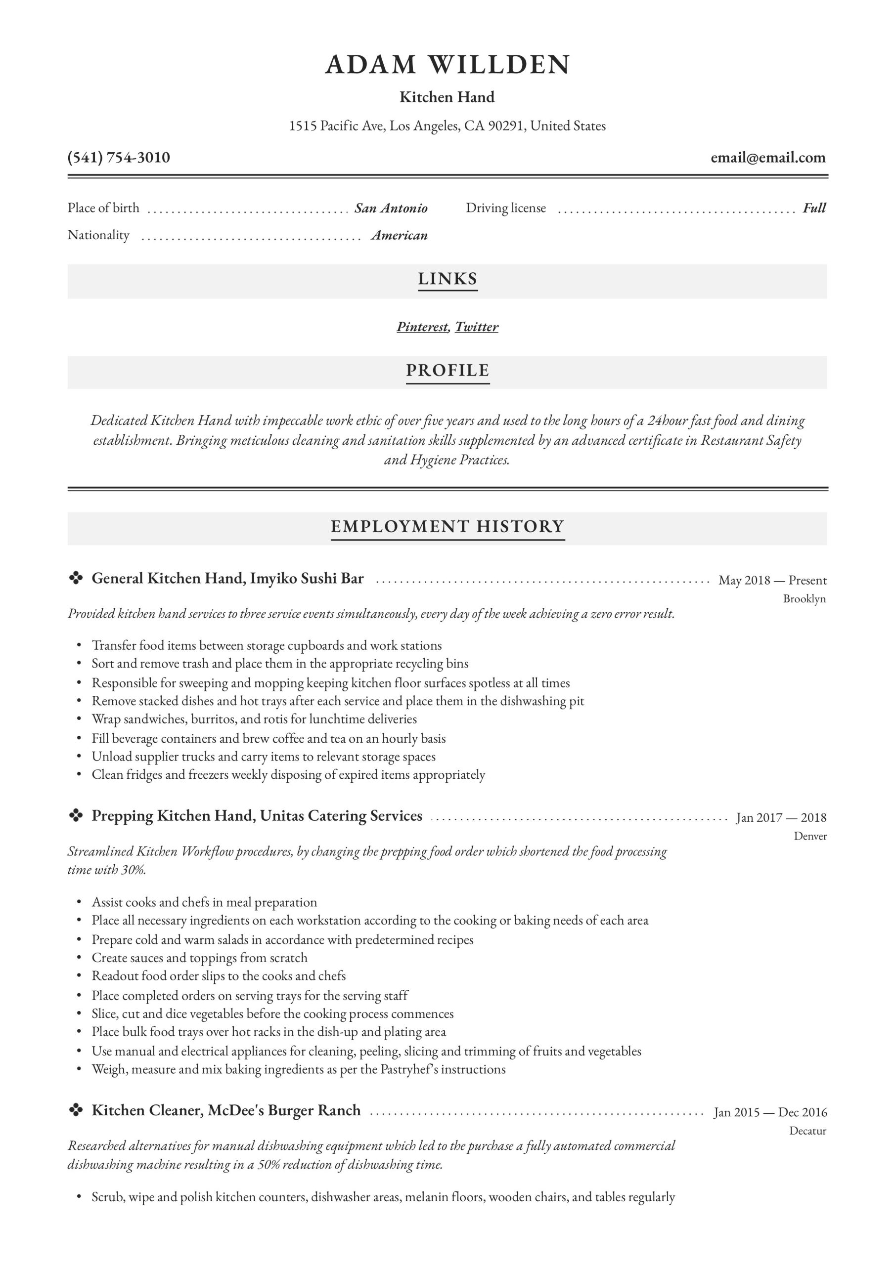 Sample Resume for Restaurant Kitchen Hand Kitchen Hand Resume – Derel and all other pictures, designs or photos on our website are copyright of their respective owners. we get our pictures from another websites, search engines and other sources to use as an inspiration for you. please contact us if you think we are infringing copyright of your pictures using contact page. we will be very happy to help you.