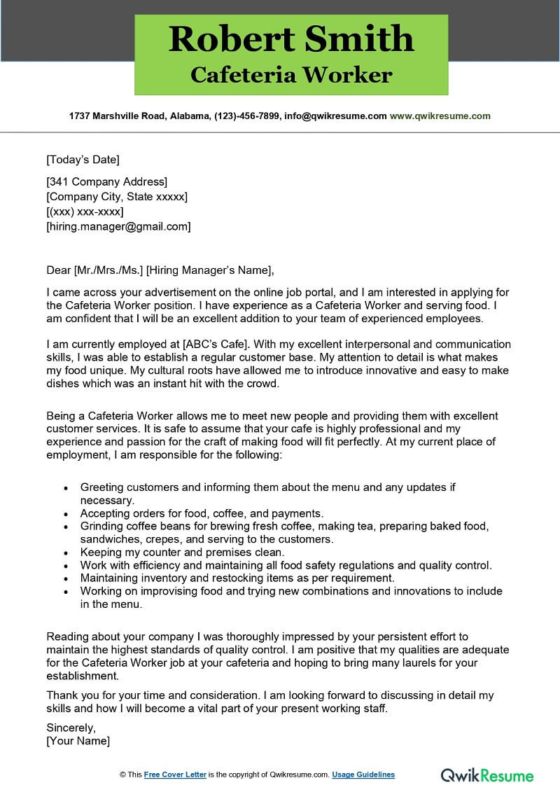 Sample Resume for School Cafeteria Worker Cafeteria Worker Cover Letter Examples – Qwikresume and all other pictures, designs or photos on our website are copyright of their respective owners. we get our pictures from another websites, search engines and other sources to use as an inspiration for you. please contact us if you think we are infringing copyright of your pictures using contact page. we will be very happy to help you.