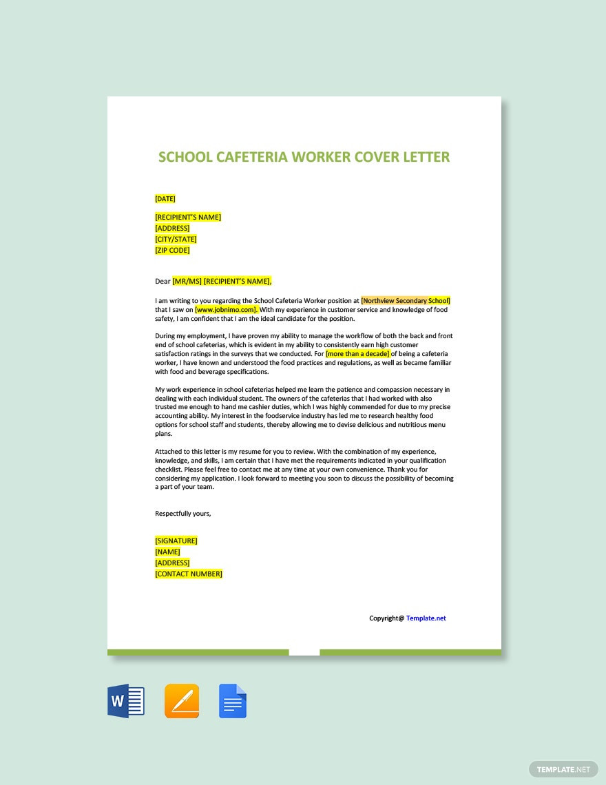 Sample Resume for School Cafeteria Worker School Cafeteria Worker Cover Letter Template – Google Docs … and all other pictures, designs or photos on our website are copyright of their respective owners. we get our pictures from another websites, search engines and other sources to use as an inspiration for you. please contact us if you think we are infringing copyright of your pictures using contact page. we will be very happy to help you.