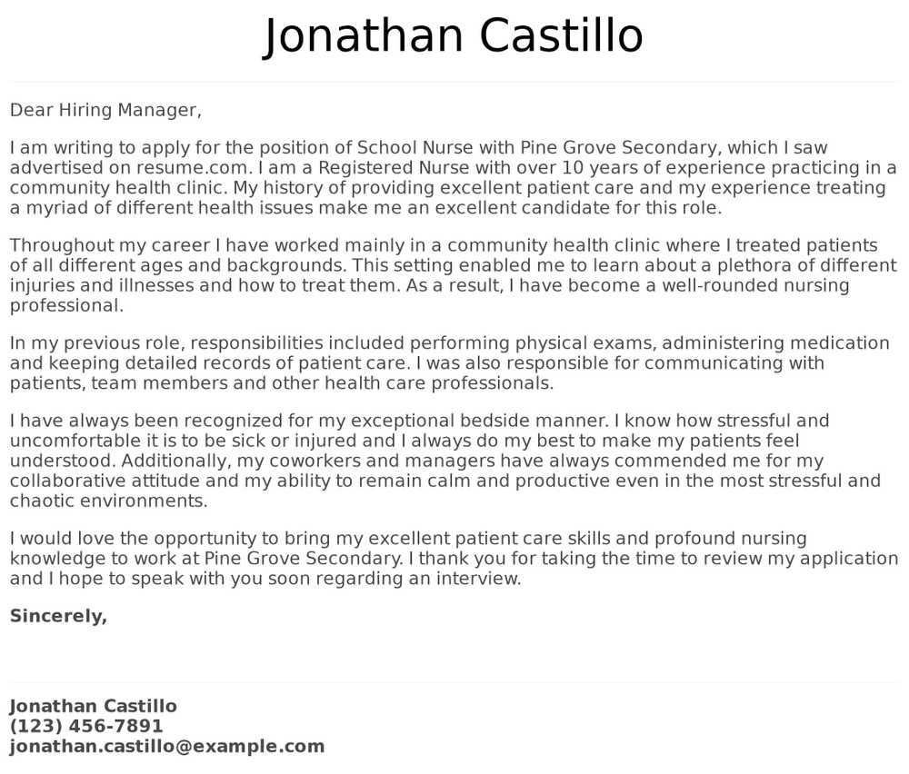 Sample Resume for School Nurse Position School Nurse Cover Letter Examples, Samples & Templates Resume.com and all other pictures, designs or photos on our website are copyright of their respective owners. we get our pictures from another websites, search engines and other sources to use as an inspiration for you. please contact us if you think we are infringing copyright of your pictures using contact page. we will be very happy to help you.