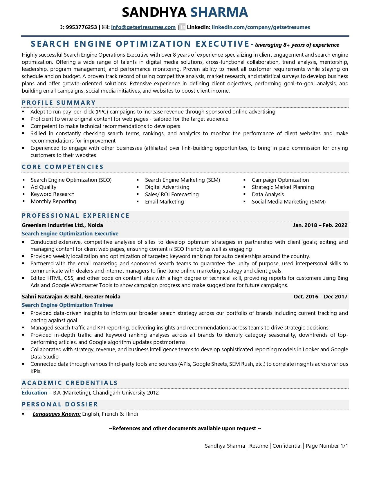 Back To Sample Resume for Search Engine Optimization