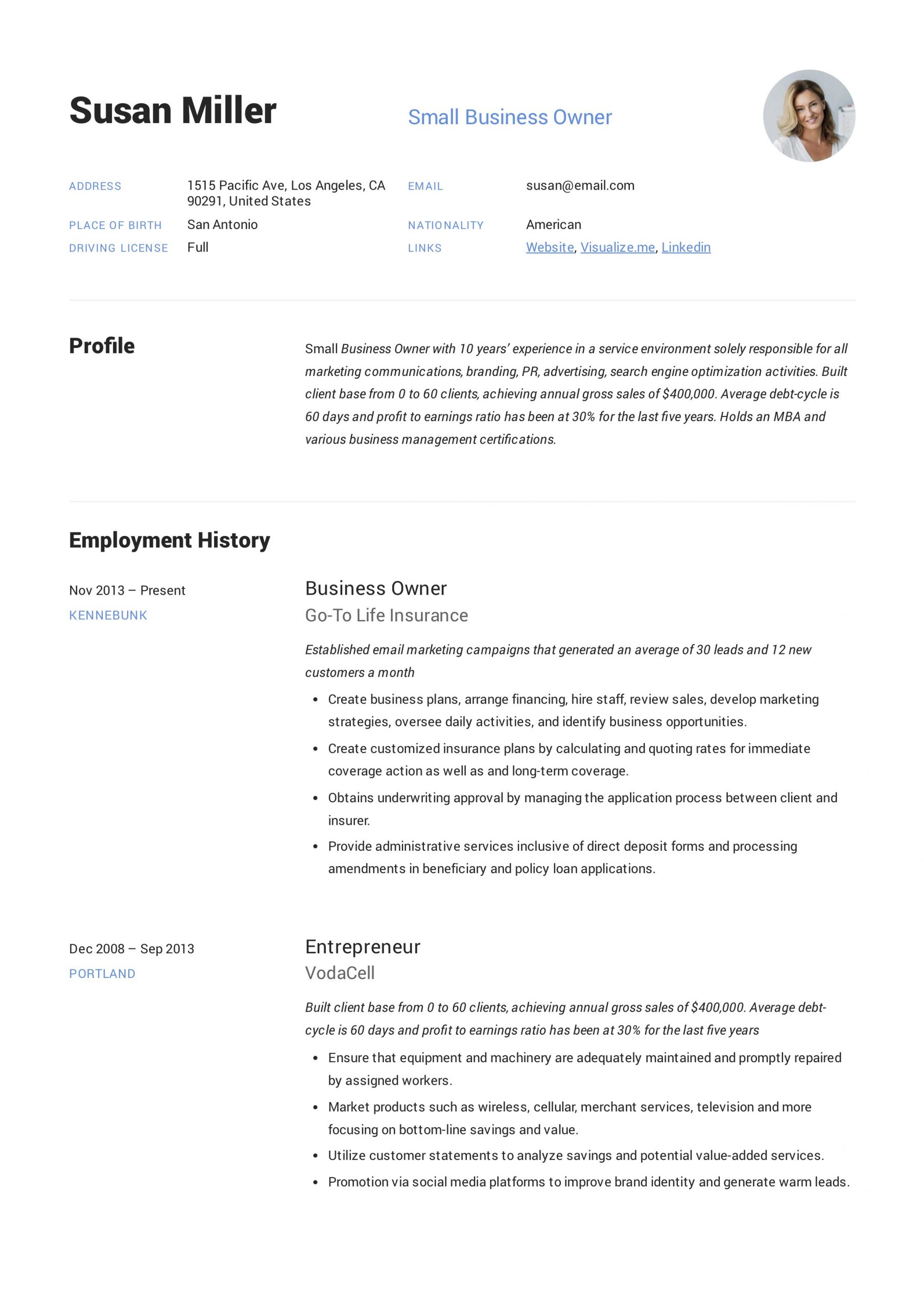 Sample Resume for Self Employed Business Owner Small Business Owner Resume Guide 19 Examples Pdf 2020 and all other pictures, designs or photos on our website are copyright of their respective owners. we get our pictures from another websites, search engines and other sources to use as an inspiration for you. please contact us if you think we are infringing copyright of your pictures using contact page. we will be very happy to help you.